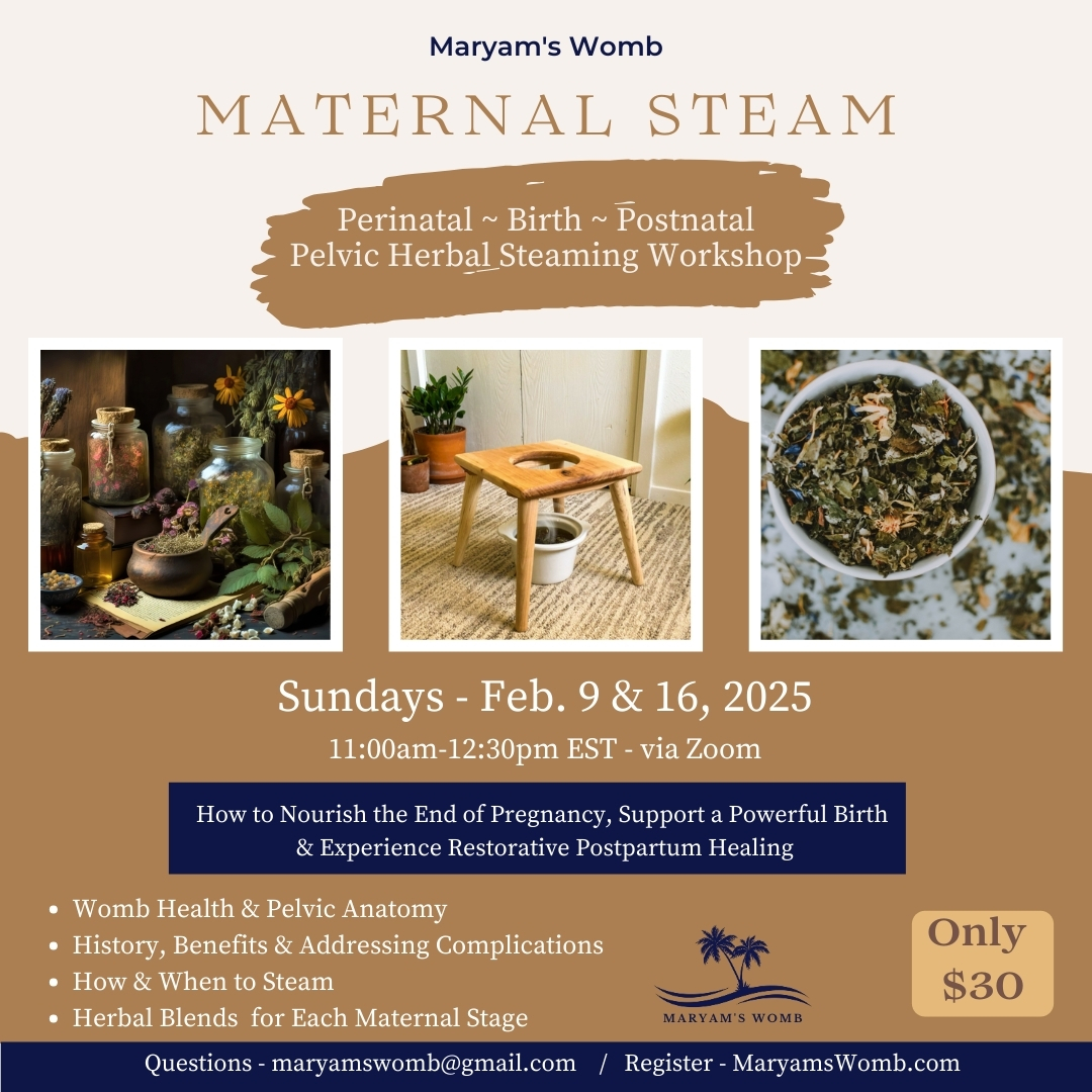 To pay with card select the card icon for your preferred payment method below. This purchase is for the Maternal Steam Workshop. Details will be sent to the email used for purchase. Sponsor: If you are sponsoring someone please email their info (Name & Email Address) to maryamswomb@gmail.com If you would like us to apply your sponsorship to someone in our community there is no need to email.